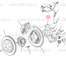 Кулак задний правый для автомобилей Cadillac CTS, начиная с 2007 года выпуска (2 поколение), оригинальная деталь, производства General Motors.