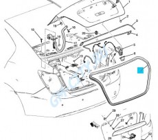 Уплотнитель крышки багажника для кузова автомобилей Chevrolet Aveo T300 (Шевроле Авео Т300), выпускаемых с 2012 года. Запчасть оригинальная, производитель компания General Motors (GM).