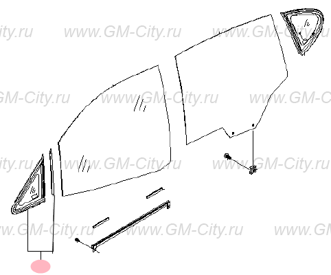 Стекло в кузов переднее левое для автомобилей Шевроле Реззо (Chevrolet Rezzo) с 2000 года выпуска. Запчасть оригинальная, производитель General Motors (GM).